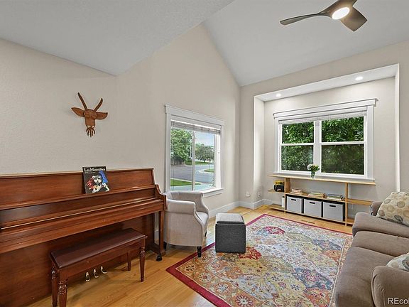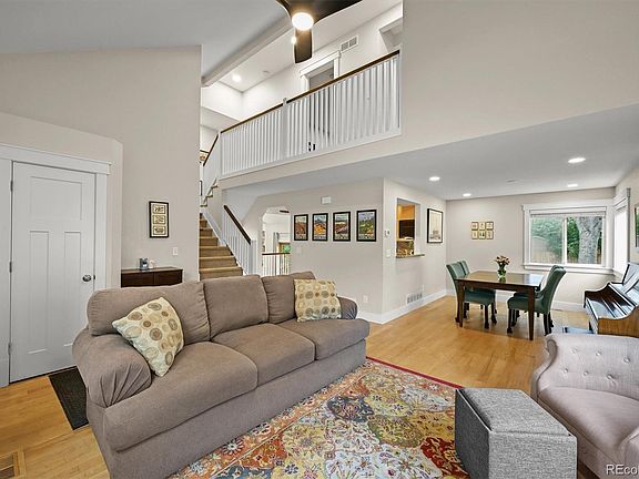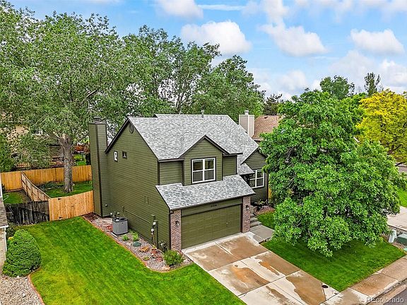Turn-key, remodeled, and move-in ready! This beautifully updated 3-bedroom, 3-bathroom home is filled with natural light, vaulted ceilings, and gorgeous finishes throughout. A major 2022 renovation brought thoughtful upgrades like new craftsman-style trim, solid doors, fresh paint in every room, and the complete removal of popcorn ceilings. Gorgeous hardwood floors flow through the main living areas, creating a warm and welcoming vibe. The remodeled kitchen is a dream for home chefs, featuring granite counters, stainless steel appliances, a gas stove, light maple cabinetry, and a pass-through window to the dining room. The adjacent family room has been modernized with vaulted ceilings, skylights, custom built-ins, and a newer electric fireplace set against a stunning shiplap accent wall. Upstairs, the spacious primary suite was completely reimagined with a custom walk-in closet with built-in organizers and a spa-like primary bathroom showcasing a beautifully tiled shower, quartz counters, and modern light-up mirrors. There are two additional bedrooms and a full bathroom upstairs. The finished basement provides a flexible media or rec space, complete with a granite wet bar, mini fridge, and generous storage. Step outside to the large, flat backyard, fully fenced and shaded by mature trees, it’s ideal for summer barbecues or quiet evenings on the stamped concrete patio. Additional highlights include a new furnace and A/C (2020), water heater (2025), newer skylights (2019), and updated fencing. Just one home away from scenic walking and biking paths that lead to the neighborhood lake and open space. This home combines style, functionality, and an unbeatable location!