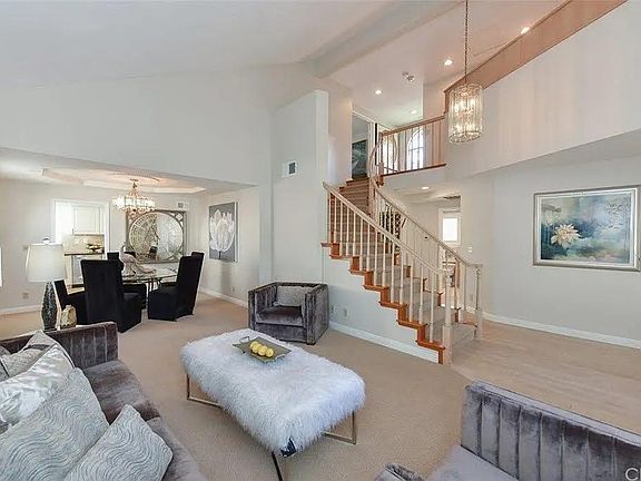 Welcome to this beautiful 4 bedroom, 3 bath Yorba Linda home located in the highly desirable East Lake Village Community within the top rated Placentia-Yorba Linda school district. Home is in excellent condition and will be ready for move-in 9/1/25. As you enter the grand 2 story entrance with curved staircase and chandelier, there is a large formal living room and dining room. The remodeled kitchen has granite countertops, custom cabinets (with pullout shelves), stainless steel appliances (fridge/freezer, dishwasher, stove/oven, and microwave), with gorgeous views of the sunset and the beautiful backyard with putting green. The family room is very large with a dining nook and has direct sliding door access to the relaxing backyard patio area. There is 1 bedroom and 1 full bathroom (with large remodeled glass shower) on the first floor. The laundry room has sink, washer/dryer hookups, and direct access to the 2 car garage which has lots of built-in storage cabinets/shelves and a Tesla EV wall charger. Upstairs is a loft and hallway with additional shelves and cabinets. The master bedroom is very large with high ceilings, a retreat area with fireplace, and dual walk-in closets. The master bathroom has dual sinks, glass shower, and a large soaking tub. There are 2 additional bedrooms upstairs each with high ceilings, and a 3rd full bathroom with shower/tub. Outside, the front and backyards have been professionally landscaped with mature plants and trees (pomegranate, fig, mandarin, guava, avocado, lemon, and mango). Additional features include a tankless water heater, whole house water softener system, fresh paint throughout the house and new carpet upstairs. The East Lake Village community offers resort style amenities including: multiple pools, hot tubs, gym, basketball/volleyball/tennis courts, clubhouse, and access to the 15 acre lake for boating and fishing. Video tour will be available after a completed application is received on Zillow and verifies tenant requirements are met. Apply online today! Tenant requirements: 1) Income: must be at least 3x monthly rent - verification will be required. 2) Security deposit: minimum of 1 month's rent (may be higher based on situation). First and last month's rent also due at lease signing. 3) Background, rental, and credit check: required for all applicants/tenants over age 18 that will be residing in home. 4) Utilities: Tenant responsible for all utilities (including water, gas, electric, trash). Owner pays for HOA and weekly gardener. 5) No pets or smoking.