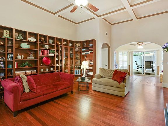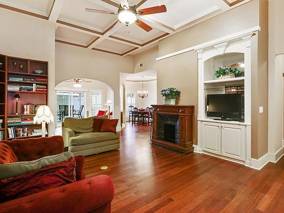 Upgrades galore in this sought-after community! Custom coffered LR ceiling, antique oak surround mantel on fireplace, built-ins, arched doorways and natural plank floors in main living areas. Wired for surround sound. Granite and SS appliances, of course! Functionality at its best with Master on Main. Privacy abounds in the tranquil outdoor space w/water feature, koi pond, pergola, and deck to enjoy and relax! Now, THIS is HOME!!
