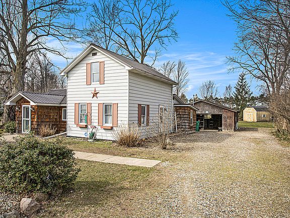 Beautifully maintained home ready for new owners! This home features beautiful flooring throughout & has been nicely updated. Located a short distance from 131, Portage River, Portage Lake (perfect for kayaking!), Mendon, & Three Rivers, the home offers modern conveniences but still sits in a quiet location. The main floor of the home features a living room, sitting area, & dining area with built-in & access to the backyard/deck. The kitchen is open to the dining space & has a nice amount of counter space along with lots of natural light. The primary bedroom, full bathroom, & laundry room are all located on the main floor. Upstairs there are 2 more bedrooms along with a half bathroom. The basement contains the utilities but also allows for storage space. The backyard has a covered deck, pond, patio area, storage shed, & a detached garage. The home has 2 water heaters, land behind it that is owned by the township & is free usable space, a newer well, school of choice, upgraded wiring & plumbing, plus so much more! This is a gorgeous home you don't want to miss out on!