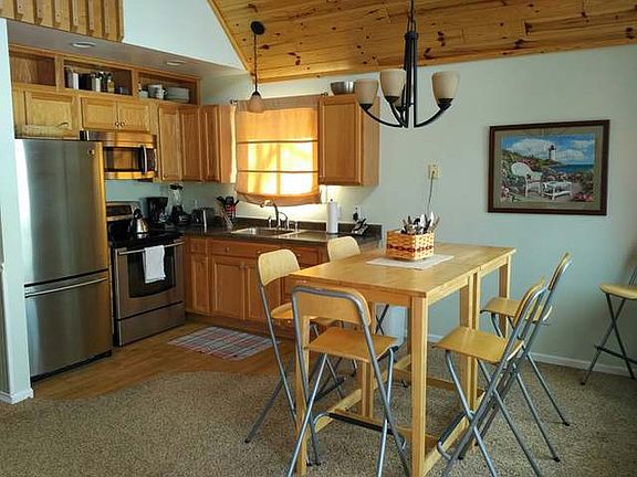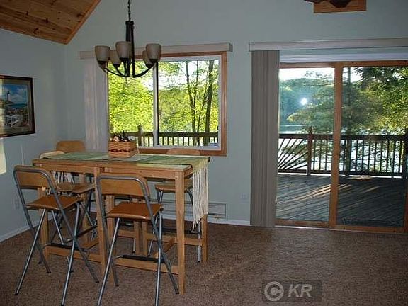 You'll love this charming, updated cottage with light knotty pine vaulted ceilings, updated floor coverings, newer appliances, modern country kitchen and soft natural colors throughout. Sit out on the large open deck and take in the beautiful view. Enjoy amazing sunset views over scenic Blue Lake. Listen to the loons sing and watch Eagles fly over the lake. Blue Lake offers some of the best fishing around! This private no-gas-motors lake is full of bluegill, perch, sunfish, crappie and bass! Walk down to the sandy swimming beach, just down the road. There is also a park with a playground for kids and gorgeous walking trails. Snowmobile trails are just a couple mile ride down the road. 1000's of acres of state land are also just a short distance way.