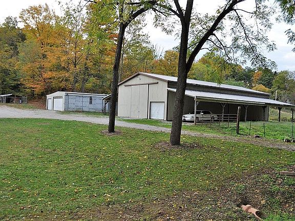 45 Acres in Hocking County - perfect for hunting, hiking, trail riding, & exploring! This beautifully wooded property offers a 3 BR & 2 BA home w/a full walk-out LL, covered front & side porches, & a deck that surrounds the swimming pool! Entering the home you'll find the generous living room w/vaulted ceilings opening to the spacious kitchen & eating area. The owner suite boasts a private full bath complete w/corner soaking tub & laundry room access. Finish the full walk-out LL for added living space. You'll love exploring this property all year round whether hiking, hunting, riding ATVs, or just taking in the view from the covered porch! OUTBUILDINGS: 36'x80' Pole Barn w/14' doors & a 14'x80' lean-to on each side // 24'x24' Garage w/attached 26'x24' Workshop/Parking! **No Trespassing**