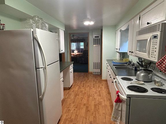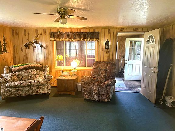 This cute home offers 3 bedrooms and 1 full bath. Enjoy the covered deck off the kitchen, enclosed front porch, Anderson windows, and a new metal roof in 2024! Large living room for all your gatherings. Spacious shed with electriticity. This home is nestled between Grass Lake and Island Lake and only minutes to Pratt Lake! Perfect weekend get-a-way spot that is close to state land, ORV trails, and canoeing on the Cedar River. Water heater new in 2020. Spectic replaced in 2013. Home is being sold "AS IS".