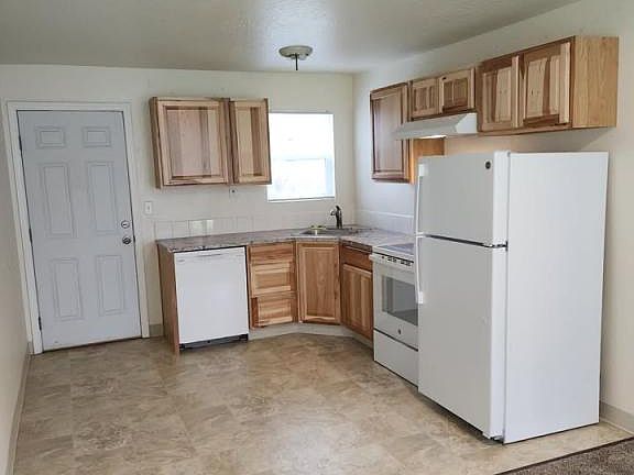 2 bedroom, 1 bath with range, refrigerator, garbage disp. Washer/dryer hook-ups. One car garage. Gas wall furnace. Pet approved.