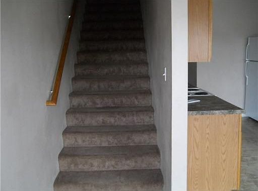 Townhome style single unit with kitchen appliances,one bedroom and full bath downstairs (shower only) and full bath in hallway upstairs with two bedroom, some window treatments in unit driveway parking eligible for Homwpath Mortgage Visit www.homepath.com for info