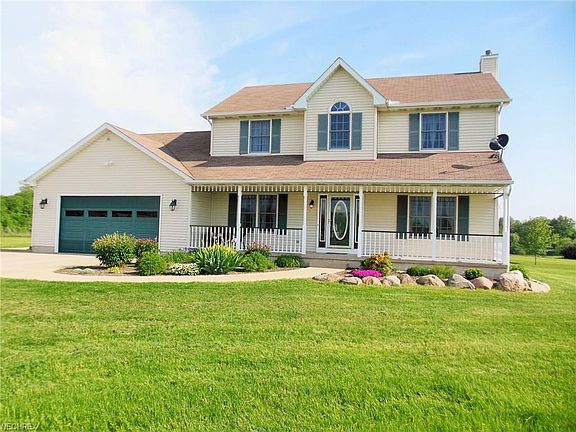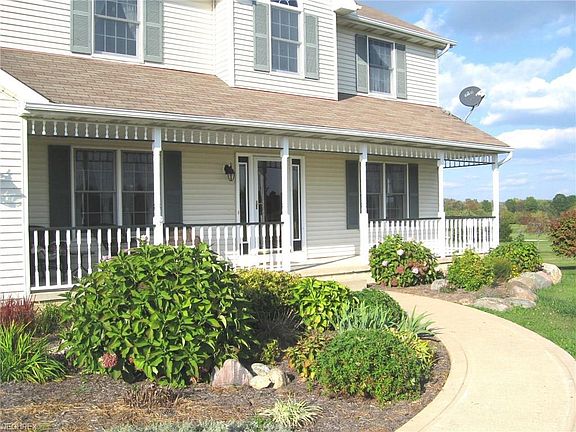 Enjoy free gas to this super clean 4 bedroom, 2 ½ bath home on 11.2 acres. A detached 64x40 garage offers additional parking and plenty of space for the avid collector, hobbyist or horses. Enjoy the tranquility and scenic view of country living while sitting on its attached 16x40 covered porch. The attached two-car garage is heated and features a work area at the rear of the garage. Entering the home from the front porch greets guests with an open staircase, great room, open floor plan, and 9-foot ceilings. The great room boasts a natural gas fireplace with brick hearth and oak mantel and flows to the dining area and kitchen with an abundance of counter space and large walk-in pantry. The first floor laundry room features plenty of cabinets for storage, Corian countertop, ceramic tile floor, closet, and half bathroom. Rounding out the main level is a den/office which would also make a great formal dining room. The second level features a large master suite with walk in closet and private bathroom, three additional bedrooms, and full bathroom. The detached garage is fully insulated, dry walled, concrete floor suitable for a car lift, and plumbed for water and heat. The attached porch features a knotty-pine ceiling with recessed lights and ceiling fan; a perfect spot to relax or entertain. Free gas is supplied from a natural gas well located on the property.
