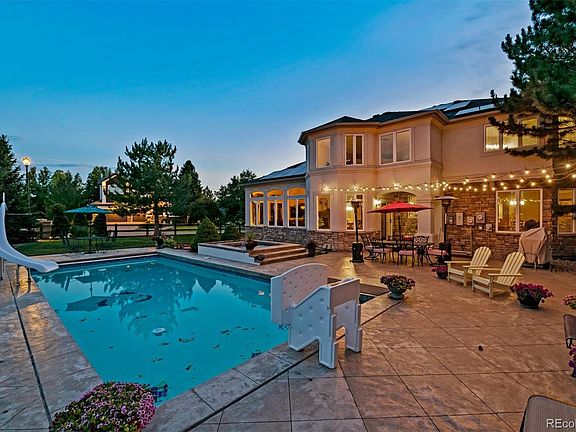 *** Temporarily withdrawn. Seller is repairing the roof after hail damage.*** Style and sophistication describes this extraordinary Grant Ranch 5 Bedroom, 5 Bathroom energy efficient solar home that spans over 6,400 finished square feet! Upgrades abound including: new dual AC units, new roof and gutters, some new windows, private outdoor pool and hot tub/spa, mud room, stainless steel kitchen appliances, granite counters, expansive hardwood flooring, 2 fireplaces and more! Grand Foyer welcomes you into the formal Living/Dining Room perfect for hosting family gatherings. Convenient main floor study with custom built-ins and spacious Family Room featuring vaulted ceiling, cozy fireplace and a wall of windows providing an abundance of natural light. The gourmet kitchen is the heart of the home complete with pantry, stainless appliances - new JennAir double oven, new Thermador gas cooktop, new microwave, granite counters, island and eating area. 4 upper-level bedrooms including a primary retreat boasting vaulted ceiling, sitting area, walk-in closet and remodeled 5-piece bathroom with heated tile flooring and free standing soaking tub. The finished basement offers 2,275 SF of additional living space complete with media/home theater room, exercise room, bonus/game room with wet bar and pool table plus laundry, 5th bedroom and bathroom. The side-load finished 3 car garage has custom epoxy flooring and ample storage space for all your toys! Entertaining or casual living extend to the outdoor living area featuring pool (with retractable safety cover that seals pool), hot tub/spa, lush landscaping and stamped concrete patio. Excellent location with easy access to C-470, 285, Santa Fe Dr, Clement Park plus Southwest Plaza shopping and dining. Enjoy the exclusive amenities of the Grant Ranch community including Village Center, pool, lake, marina, tennis, parks and trails. 14 month silver plan Blue Ribbon Home Warranty is included.