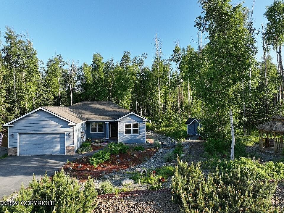 Welcome to your stylish and inviting sanctuary! This home boasts a clever split-style floorplan for privacy, with vaulted ceilings adding to the airy ambiance. Outside, lush landscaping, a gazebo, and a stylish bridge over a dry creek create a serene setting. The gravelled rear yard requires minimal upkeep, perfect for pet owners with a fenced-in pet area and doggie door access to the garage.Welcome to your new sanctuary! This charming home exudes style and comfort, all while maintaining its like new condition. Come inside to discover the inviting ambiance, enhanced by the vaulted ceilings that create an open and airy feel throughout. The cleverly designed split-style floorplan offers a sense of privacy and functionality, with the owner's suite tucked away on one side and the guest bedrooms on the other, ensuring ample space for relaxation and hosting. Outside, the landscaping steals the show, boasting lush gardens and tranquil dry creek beds that meander gracefully through the property. Picture-perfect rock pathways guide you along the natural drainage routes, adding both beauty and practicality to the outdoor space. Don't forget to pause and admire the gazebo and the stylish bridge that spans the dry creek, a delightful touch that adds character to the serene setting. The gravelled rear yard is a haven for easy maintenance, allowing you to spend less time on upkeep and more time enjoying the peaceful surroundings. For pet lovers, the fenced-in pet yard offers a secure space for your furry friends to roam freely, complete with a convenient doggie door for hassle-free access to the garage. Inside, a cozy kennel awaits your four-legged family members, thoughtfully located for their comfort and convenience. Experience the perfect blend of style, functionality, and relaxation in this delightful home. Embrace the warmth and comfort of this inviting home and property, where every detail has been lovingly crafted to welcome you home. Don't miss out on the opportunity to make this charming retreat your own!