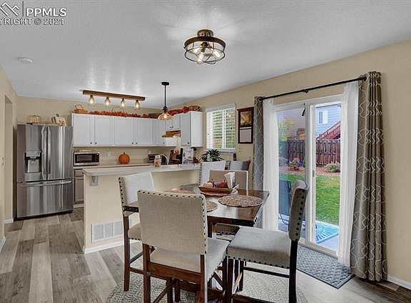Meticulous fully-finished Stetson Hills 2-Story Home! Hard-to-find 4 Beds UP! This stunning home is located on a lovingly maintained lot with new landscaping in both front and back and has tons of curb appeal! A charming covered patio welcomes you and you will know that you are HOME SWEET HOME! Enter the home into the living area that has new beautiful and durable luxury vinyl plank flooring along with unique architectural features, large windows and a built-in entertainment center. The spacious and updated kitchen is sure to make the chef in the family smile! Tons of counter space, freshly painted cabinets, new stainless steel appliances including a gas cooktop, new light fixtures and a large eat-in area with sliding doors that lead to your fully-fenced backyard with a large patio area to enjoy! The 2019 LG top load washer and dryer stay! Also on the main level is a charming powder room and access to your attached 2-car garage! The second level has a spacious primary suite with room for a sitting area and features an updated en-suite and a walk-in closet with an organizational system! 3 additional nice sized bedrooms and another updated full bathroom finish off the upper level! The large finished basement has plenty of additional living space with a recreational room with a dry bar and a 5th bedroom with another updated full bathroom! Great for overnight guests or it makes a perfect teenager or in-law suite! Don't miss the large closets in the basement for storage and enjoy central air during our warm summer season! The fully fenced backyard has a concrete patio along with a storage shed! This home is in a great location close to the Powers Corridor and it's many shops and restaurants. From the moment you walk in the door, you will know you are home! Come take a look today and fall in love!