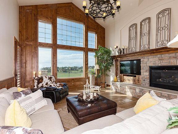 Stunning Timbers home w/all the bells and whistles! Formal dining boasts wainscoting & coffered ceiling! Spacious family room w/cathedral ceiling & lovely mountain views! The new gourmet kitchen features upgraded cabinetry, slab granite countertops, custom tile backsplash, all stainless appliances including built-in fridge, gas cooktop, butler's pantry, & sunny breakfast nook! Step out to the private covered patio and enjoy summer BBQs w/family & friends or relax by the fire pit. Main floor study w/wainscoting & built-ins! Retreat to the main floor master with its own fireplace & indulge in the spa-like 5-piece bath! 3 additional bedrooms on the upper level-2 share a Jack-n-Jill bath, & 1 has it's own 3/4 bath, perfect for guests, teens or mother-in-law! Finished walkout basement with rec room, fireplace, theater room (seating is included), a 5th bedroom, and 3/4 bath! Other features: Mountain Views, Huge Deck, 4 car garage, central vac, plantation shutters-too much to list.