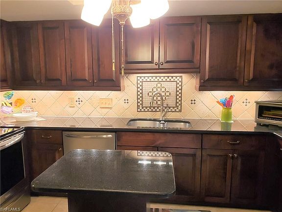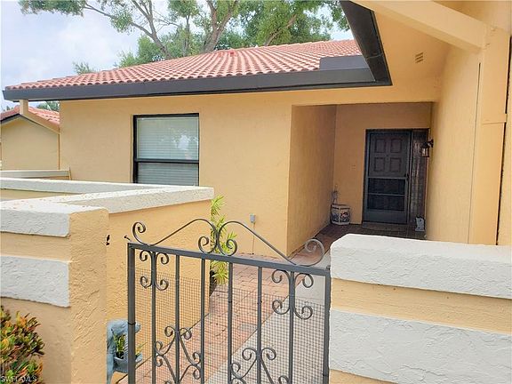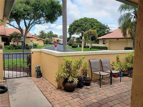 Location! Location! Location! Looking for convenience and carefree living? Well, look no further! This spacious 2-bedroom, 2 bath villa in the GATED Governors Island community is located just behind the Bell Tower Shops, putting you within easy walking distance to many shops, restaurants, and movies...not to mention, a short ride to the beach, the airport, and the sports complexes! This CORNER DETACHED VILLA (with attached 1-car garage) gives the feel of a single family home while offering the amenities of a PET FRIENDLY condo community. The home has been well-maintained and has a beautiful upgraded kitchen with rich, dark wood cabinets and granite counter tops. There is tile throughout...NO CARPET ANYWHERE! The AC and all the stainless steel appliances in the kitchen are newer (2016). The open concept layout of the living room and dining area is perfect for your family gatherings and for entertaining guests. With both a front courtyard patio and a screened lanai in the back, you will have lots of outdoor space to enjoy the SW Florida weather. Did I mention that the community pool is within sight and just a few short strides away? This villa is a MUST SEE...schedule your showing today!