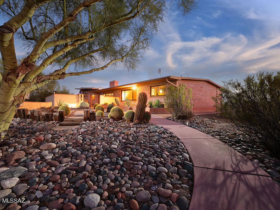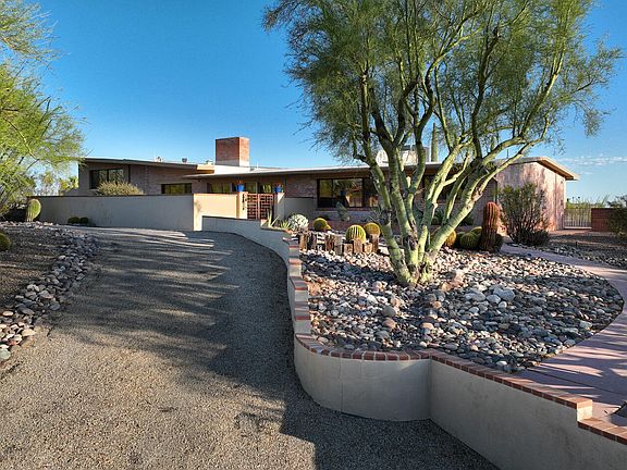 When you talk about the old Catalina Foothills, you talk about Catalina Estates #3 and of course, the heart of Cat #3 is N. Via Alcalde. This beautiful haciendia-style brick home abounds with ''Old Pueblo'' warmth and charm mixed with stylishly renovated interiors. Four bedrooms (two Primary) and five bathrooms, including a 981 sq ft guest house. Saltillo flooring throughout, Talavera tile counter tops, stainless steel appliances, 3 fireplaces, 2 car garage, pool, beautiful mountain & city lights view. This is A MUST see for the discerning buyer. Please allow 48 hours for sellers response. Open house Sat Aug 12 and Sun Aug 13 1 to 4 pm