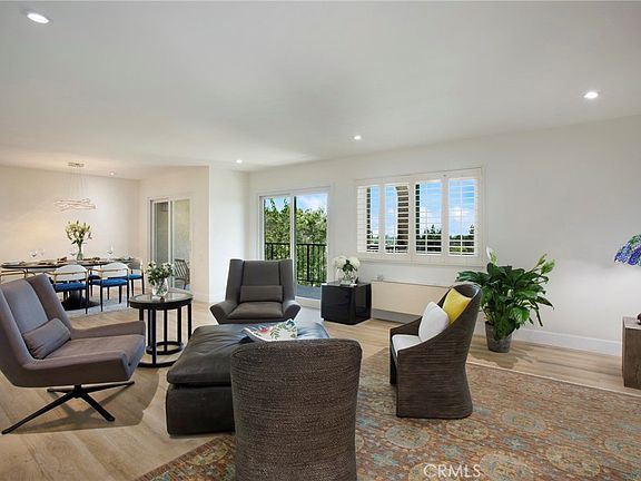 Gorgeous, COMPLETELY Remodeled View Condo in the Third Laguna Hills neighborhood of three-story condo buildings in beautiful Laguna Woods Village. PRIME VIEW LOCATION, QUIET, SERENE, and PEACEFUL. One of the best locations in LWV between gates 9 and 10, just off of El Toro Road by the Laguna Audobon neighborhood, the 73 toll road, with 2,100 acres of rolling hillsides, and just ten minutes to Laguna Beach! Feel the cool breezes while relaxing on the balcony with picturesque views of trees and the Saddleback Mountains. This home was gutted to the studs and completely remodeled (including electrical, plumbing, and insulation), showcasing high-end and luxurious appointments. Gorgeous wood-like commercial grade Luxury Vinyl Plank flooring, 6" baseboards, custom tiled bathrooms with porcelain tile showers with glass doors, custom vanities, modern black hardware, high-end toilets, recessed LED dimmable lighting, and sparkling chandelier in the dining room, solid core doors with frosted glass inserts, and new dual-paned California Doors and Windows (CDW) sliders and windows. The primary bathroom has dual vanities and marble flooring to accent the porcelain walls and shower. The breathtaking kitchen is thoughtfully designed with Quartz countertops, a waterfall design for eat-in kitchen and counter areas, custom lacquer cabinetry with brushed gold hardware including pull-outs for trash and spices, and tons of great storage cabinets. Bosch Refrigerator/Freezer, Bosch Dishwasher, Commercial Thor Electric Oven and Cooktop, Whirlpool Microwave, 'Wi-Fi Speaker Mirrors' with multiple settings in bathrooms, custom-designed closets with organizers and pullouts, complete with mirrored wardrobes, CAT 5 wiring with new cabling throughout for clean lines and more efficient Wi-Fi. This stunning condo can be accessed by a convenient elevator in the lobby, from the underground parking garage, or by stairs. One covered garage space with storage and EV charging, guest parking outside, shared laundry on each level, and an owner-only community clubhouse just for the building! Laguna Woods Village is an amazing 55+ community with too many amenities to list, including 27-hole golf course, 9-hole golf, ten tennis courts, pickleball/paddle tennis, Bocce, lawn-bowling, billiard, archery, table tennis, fitness centers with several classes, three heated pools, yacht club, 250+ other clubs, equestrian center, performing arts center, movie theatre, free bus service to stores and so much more!