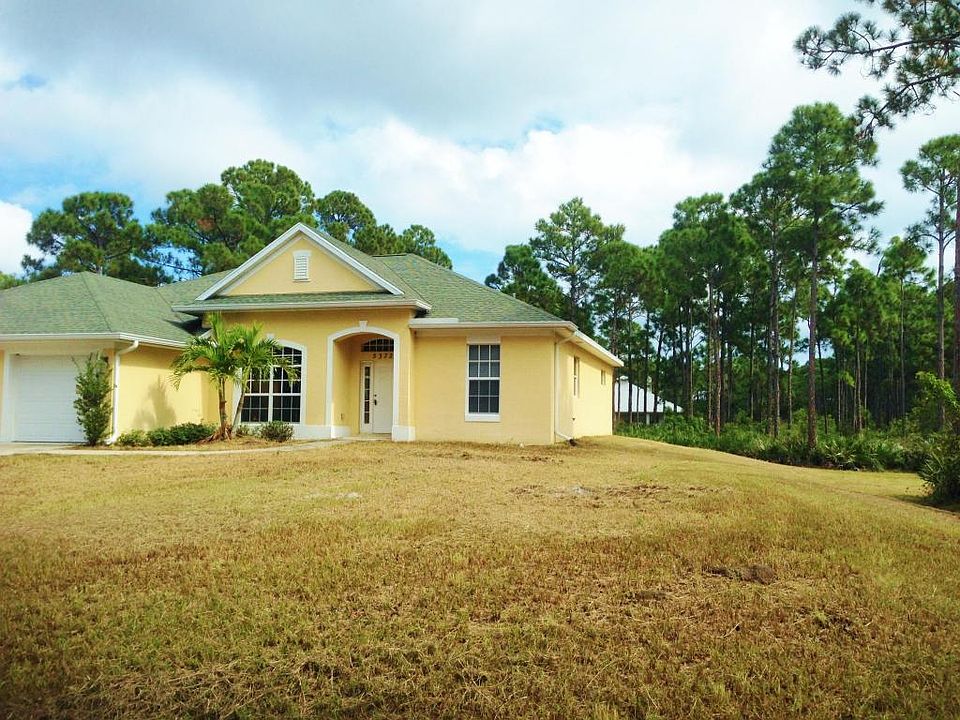 Your private getaway dream come true! This four bedroom, three bathroom on one acre is surrounded by nature but only minutes away from all the action in Vero Beach! A three car garage offers plenty of room to protect your vehicles, plus family storage. Once you enter you are greeted by a wide open, well lit and airy living spaces with huge vaulted ceilings! A big open kitchen with food preparation island and granite counter tops and plenty of cabinet space! The living room has a built in alcove for your entertainment center and huge sliding glass doors that open to your beautiful backyard. Just wait till you see the Master bedroom suite. Featuring enormous his and her walk in closets! The master bath has two sinks, a roman tub, separate shower and water closet. Don't miss out on this one!