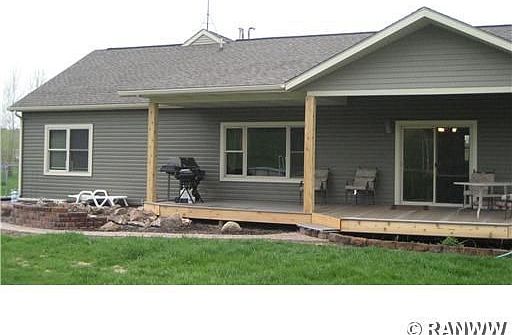 Excellent location - Close to Chippewa Falls/Eau Claire/Bloomer/Colfax - Country home offers 3 bedrooms on one level. Spacious master suite w/large bath & walk-in closet. Large kitchen & dining. View of Countryside from dining window. 9' ceilings. Hardwood floors. Stone fireplace. Fenced yard area. Covered back porch. Blacktop driveway. 24x24 attached + 26x26 detached garages. Huge rec room in lower level. Natural light from look-out windows. Trees line the property for extra privacy