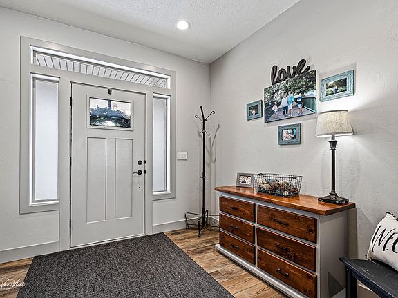 This is a super custom build home. Ceilings in this home are 9' with 10 coffers in dining, living and master bedroom. 8' Island in kitchen with custom double stacked granite, Kitchen features hidden 40 sq ft pantry with shelving and electrical for your kitchen appliances, High end LVP throughout main floor, Master Bedroom Natural gas fireplace with custom mantle and stone work, Custom tiled walk in shower with body sprayers, Access to large back deck and hot tub, Bonus room is 800 sq ft with custom mantle and stone work, Basement with 3 addition bedrooms, custom fireplace Huge utility room with storage, Large cold storage room, Large bathroom with dual sinks, linen cabinet, 3 car with third bay deep is extra deep, Garage is also heated, 68 sq ft RV Pad Stained/stamped curbing around entire home. Deck is maintenance free and covered with trex and cedar wrapped and stone posts, Hot tub and plumbed for natural gas and a fireplace. Cover has can lights and outdoor fan.