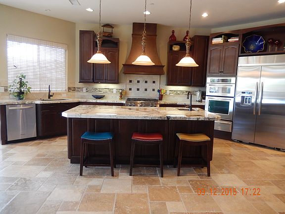 This is a wonderful OPEN-CONCEPT home - great for entertaining. SEE PHOTOS! Enjoy cooking in your fabulous Gourmet Kitchen with the 8-foot plus island/breakfast bar. High-end Kitchenaid appliances include side-by side ref/freezer, oven, MW, warming oven, 6 burner gas cooktop, ultra-quiet DW, garbage disposal. Incredible island includes sink, separate refrigerator/freezer drawers, hidden trash drawer and comfortable seating area. Or - make yourself a drink at your full-service bar, before sitting down in the expansive Family/Great Room to enjoy a good book or TV and a fire in your raised-hearth fireplace. Entertain dinner guests in the dining area while enjoying the feel of a"private resort" with a view to the backyard/outdoor living. End your hectic day with a romantic, candle-lit soak in your over-sized, 2-person jetted tub, or take a shower under the rain-head & 4 body sprays in your Spa Retreat master bath. When you step out of the bath, warm yourself by the huge fiepalce in the master bedroom. Wait til you see the 18 x 11 Master Closet!!! There are self closing, custom-made cabinets through out. MUST-SEE...Beyond Description.....Brazilian-Imported Granite/Quartz countertops in kitchen and MBA. More Amenities than possible to list....You MUST SEE to experience all of these... Two additional rooms - used as His/Her Private Offices - either side of the foyer, 2 A/C’S, 2 Tankless Water Heaters, 3 Fireplaces (Wood/Gas), High-end Ceiling fans in most rooms, Custom-ordered blinds in Kitchen/Great Room , Two Pantry’s/Etched Glass Doors, 8-foot interior doors, 3 Outside (monitoring) cameras , 997 s/f Oversized 3-car garage with 8 foot roll-up doors , 10x9 laundry room with mega-storage cabinets, sink, Add’l W/D hook-ups in Master BR Closet, House Fire-Sprinkler System, Potential for approx.. 10 parking spaces, RV Parking, Landscaped frontage, Carriage-Style Garage Doors, Additional exterior electrical for holiday lights, etc, Rain Gutters, TOO MANY UPGRADES TO LIST !!!! Currently Attached, but NEGOTIABLE ITEMS: 7 TV’s, mounts and brackets; 2 Sonos Sound Systems