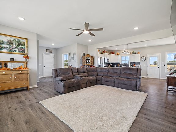 Step inside to an inviting open layout featuring a beautiful kitchen with stainless steel appliances, under-cabinet lighting, a stylish backsplash, and generous counter space — perfect for both everyday living and entertaining. The living area centers around a cozy natural gas fireplace, while large windows fill the space with natural light.