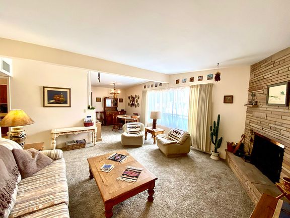 Step into comfort and convenience with this fully furnished, super clean 3-bedroom, 2-bath home, ready for its next tenants! Enjoy mountain views from the front, classic adobe construction, and a cozy living room complete with a fireplace. Fresh carpeting throughout! Out back, mature citrus trees surround a sparkling pool, and the spacious, gated yard offers both privacy and plenty of room to relax or entertain. Covered, gated parking too! Each bedroom has a queen-size bed, and ceiling fans throughout. A full laundry room with washer and dryer is also included. Best of all? Yard maintenance, Pool Service, & Pest Control are all taken care of, so you can settle in and simply enjoy everything this charming home has to offer! *1 YEAR LEASE MINIMUM REQUIRED (NOT A VACATION RENTAL)* Landlord to pay yard, pool maintenance and routine pest control. Alarm is installed, but not serviced, tenant can choose to make service arrangements. Tenant pays all utilities (electric, gas, water and cable)
