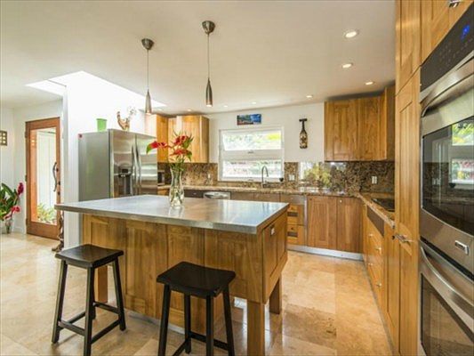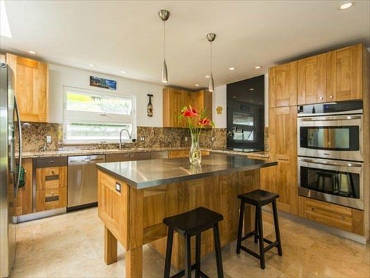 Ideally located on the golf course with views of Hanalei Bay and Bali Hai, this pristine home is one of a kind! Over 2,600 sq ft under roof in this newly remodeled custom designed home. Expansive open Bali Style floor plan bringing the outdoors in~ merging the two for true island living. This home is situated on the signature hole of the new Makai Golf Course and enjoys privacy and exceptional views. No expense was spared in the gourmet kitchen....a dream kitchen for any chef! Featuring Red Birch cabinets, stamped stainless steel island, high end stainless steel appliances with double convection ovens, induction cook top with wall of absolute black granite. Granite counter tops and back splash throughout. This 3 bedroom 3 bath homes incl