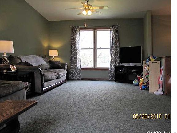 This three bedroom, one bath makes for a great starter home and is close to shopping and major roads. All appliances will stay (newer dishwasher and washing machine). You'll find a deep, two car garage with additional room for storage and/or a workshop. New carpeting in two of the bedrooms, with the master BR large enough to accommodate a king size bed and dressers easily. Basement has tall ceilings with a walk out access to large back yard with deck. Taxes reflect no exemptions, reduce by $566.00 with the basic STAR.