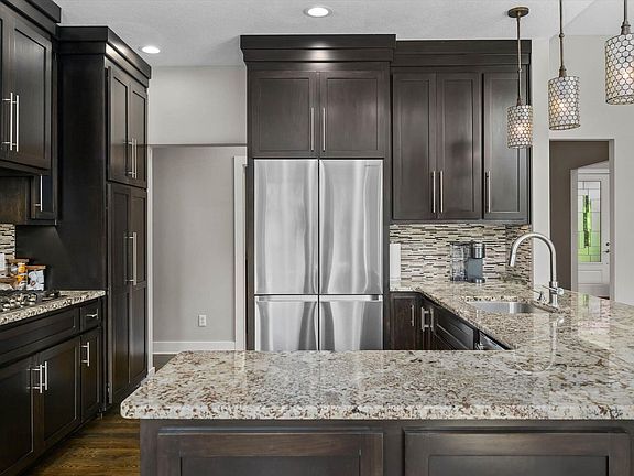 Welcome to this lovely quality home. Open floor plan transitional in style. 5 bed 3 bath 3 car garage with a formal dining room. 3 Bedrooms upstairs. Stainless appliances with Gas Cooktop and double oven. Refrigerator included. Granite vanities upstairs with Granite Kitchen Counter.Fenced back yard. Master bath has limestone shower and floors,Master bath floors are heated, with a giant soaking tub. Huge Master closet. Lots of storage in the basement. One room would be ideal to finish as a media room. Lovely windows overlook the backyard which backs up to a wet weather creek and trees. Upgraded insulation package. Open deck faces East with a gorgeous elevated view of the common area green space. Pool, custom street lights, Gated Streets and a walking trail.