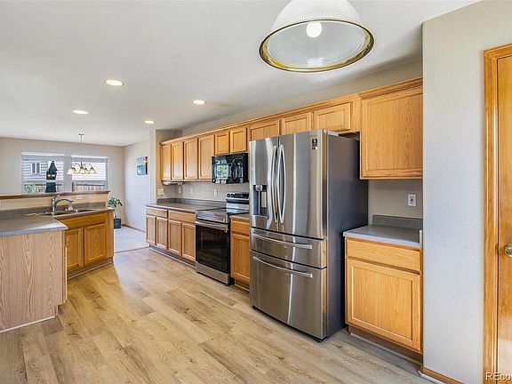 Welcome to your wonderful 2-story home on a quiet circle in the award-winning Cherry Creek School District*Terrific open floor plan with the large kitchen open to the dining room & spacious family room with gas fireplace*The eat-in kitchen offers brand new LVT flooring, lots of wood cabinets, pantry & new stainless steel appliances including french-door fridge*Powder room & laundry/mud room with new LVT flooring leads to the attached 2-car garage with fridge included*Fantastic fully fenced backyard with raised garden beds, playhouse that also works as a storage shed & large concrete patio with patio furniture set & chiminea included*2nd floor offers a master suite with walk-in closet & 5-piece bath with dual vanities & deep soaking tub, two more bedrooms, full hallway bath and loft that makes a perfect office space or could easily be converted into a 4th upstairs bedroom*Endless possibilities with the bright 973 sq.ft. unfinished basement with full-sized windows & rough-in bathroom plumbing*New water heater*Freshly painted exterior*Double-pane vinyl windows*Central A/C*Front & back sprinkler system*Radon mitigation system*Kitchen appliances & washer/dryer included*Conveniently located near miles & miles of trails, neighborhood parks & open spaces*Walking distance to the neighborhood Cherry Creek elementary, middle & high schools*Minutes away from E-470 & Southlands Mall with excellent shopping & dining options*See it today!
