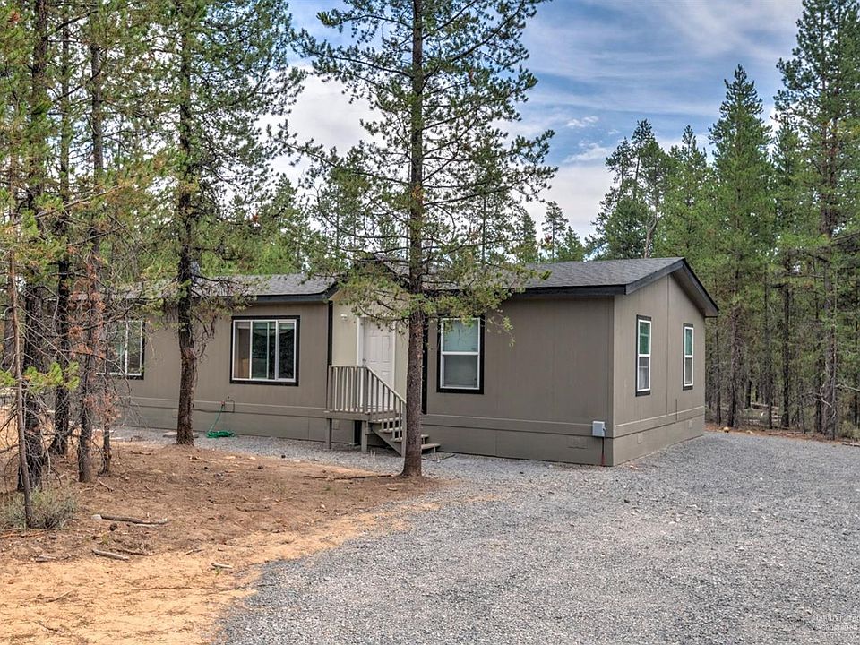 Great investment property opportunity in Central Oregon. Newer manufactured home on a coveted 1+ are lot, very close to Deschutes River access! Private cul-de-sac location but close to main roads, Bachelor and Cascade Lakes! This separated floor plan offers a huge master bedroom, large ensuite bath and walk-in closet, lots of light and 2 generous sized bedrooms with bath on opposite side of home. Open living and dining with an updated kitchen with plenty of storage with pantry. Laundry off the back entrance, with storage and stairs to backyard with tall trees and grass. Peace and quiet only 30 minutes to Bend!