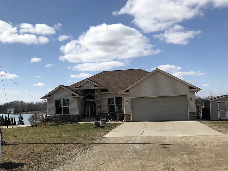 Beautiful custom built home on Lake Leslie! Sit and watch the sunset on your own private dock. Over 180' of lake frontage. Home features custom built kitchen cabinets. Hardwood flooring in kitchen and dining room. Large walk-in closet in master bedroom with a full master bath. Main level laundry. First floor home office. Walk out finished basement, with 2 bedrooms and full bath. 2 car attached garage. High efficiency foam insulation through foundation and all walls of the home for lower heating cost.