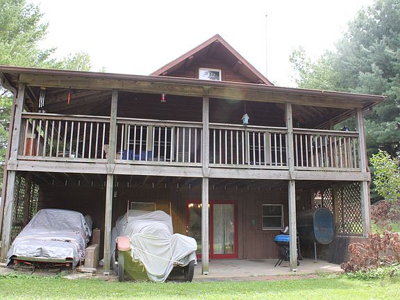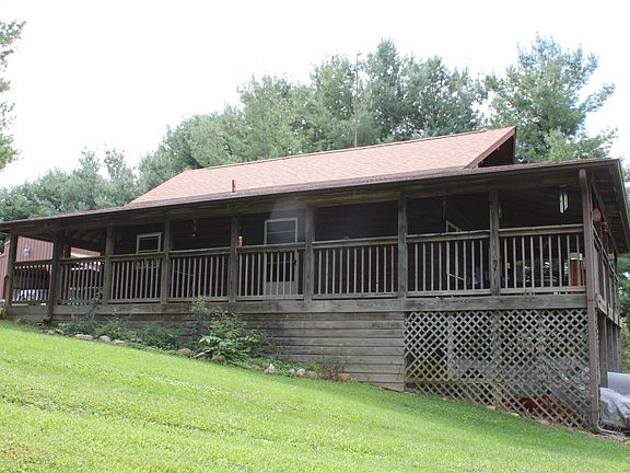 Log Cabin home with 1640 sq. ft. of living area with 4 bedrooms, 1 bath and a walk out basement all on 2.28 acres. Home has a 3-sided wood deck that wraps around the front, side and back of the home. This property also includes a 6+ car detached garage (1824 sq. ft.) with heat & electric, & shop area. Also included is a 288 sq. ft. barn with 2 lean-tos measuring 240 sq. ft. each.