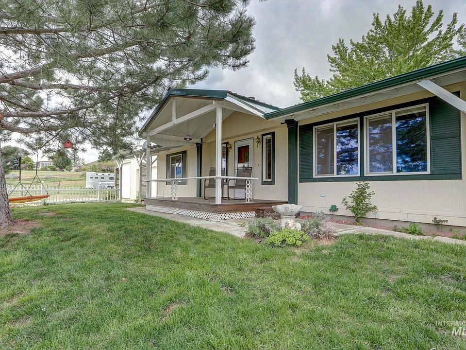 Welcome to your idyllic country retreat in Sweet, Idaho! This single level Marlette home offers a slice of paradise & 360 degree views, 5 acres of land making it perfect for those seeking a rural lifestyle. Surrounded by lush trees, step onto the front deck & take a seat & enjoy the views of Bogus basin & the Sweet/ Montour Valley. The roomy kitchen & living room invite warm gatherings,1,606 SqFt., split floor plan, 3 bedroom, both bathrooms have been remodeled, Central heating & cooling plus a wood stove for those chilly nights. Large 3 car garage with a 12' and 8' doors, small shop area. RV bay, horse barn & fully fenced pasture, garden area & fruit trees. 1/4 mile to the Payette River & Montour Wildlife conservation area, open area to walk or train your dogs, Bass fishing ponds and so on. Black Canyon Reservoir is a 10 minute drive. 40 minute commute to Boise. Schedule a swim in the local natural hot water swimming pool or water aerobics.