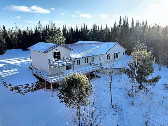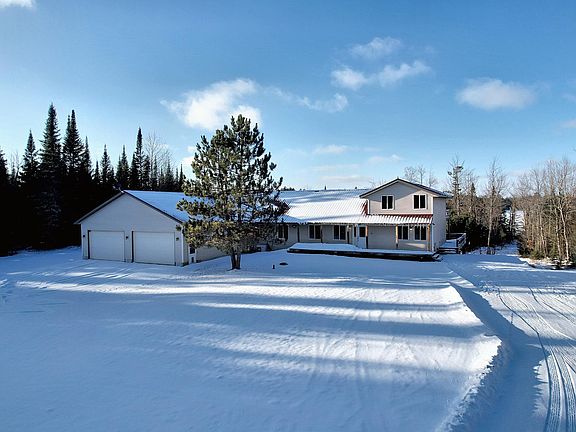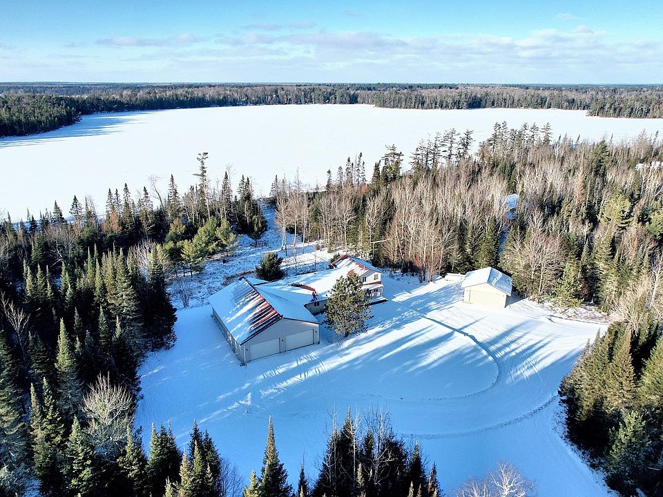 Discover privacy at this 6.33-acre property with 163' of frontage on Aldridge Lake, a 142-acre lake in Vilas & Oneida Counties. The 4BR/4BA home plus office includes: large main-level primary en-suite, a great room filled with natural light, & a kitchen with hickory cabinets & stainless steel appliances. Each bedroom has a walk-in closet, & additional storage is available throughout the home. You'll love the heated, attached garage (~40 x 30), a detached garage (~24 x 24), & a dog wash station in the laundry/mudroom. Other features include instant hot water, in-floor heat, two leased 1,000-gallon propane tanks, propane access on the deck, & maintenance free metal roofs. Outdoor enthusiasts will appreciate snowmobile trail access to Eagle River, Sugar Camp, St. Germain & beyond. Enjoy the privacy, serene views & natural duck pond in your front yard for wildlife observation. This property combines space, comfort & natural beauty in a Northwoods lakeside setting.