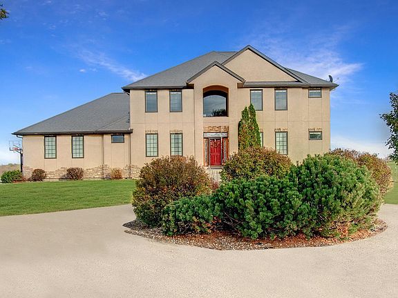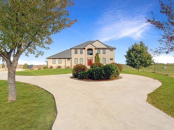 Exceptional property with beautiful country views in every direction. Large 2 story home with 6 bedrooms, large vaulted living room, main level primary bedroom with huge walk in closet. Upper level has 4 bedrooms with jack and jill bathrooms. All bedrooms are large. Lower level has wet bar and tons of storage. Property consists of 2 parcels both being sold with this acreage. Pole barn is36' x 56' with a 10' x 56' lean-to.