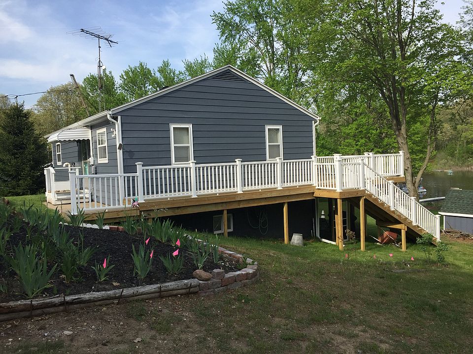Lake front For sale by owner Year round home Beautiful setting Large deck lakeside with screened porch and patio large garage and storage shed Seling $169,900 call or text for appointment
