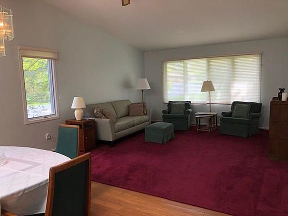 Large, bright ranch condo with everything on the entry level. Freshly painted. Handsome, unobtrusive ramp leads to formal entry. Combo living and dining with large skylights and bamboo flooring in dining space and hallway. Front bedroom could serve as study or TV room. Homey kitchen with windowed eating space and decorative shelving. Vaulted ceilings and open stairway to basement create an airy, expansive feel. There is a woodsy aura in Parkwood Commons, which is tucked away and quiet. This unit has green views to the east and south. Sliding glass doors lead from living/dining room to private deck overlooking common space. There is an accessible bathroom on first floor. Finished rec room and third full bath in basement plus generous storage areas (or more space to finish in the future). Two-car garage includes raised area for workshop. Laundry room entry from garage with utility and coat closet.