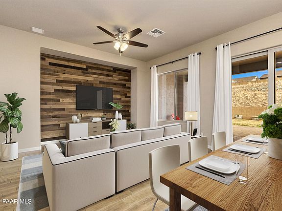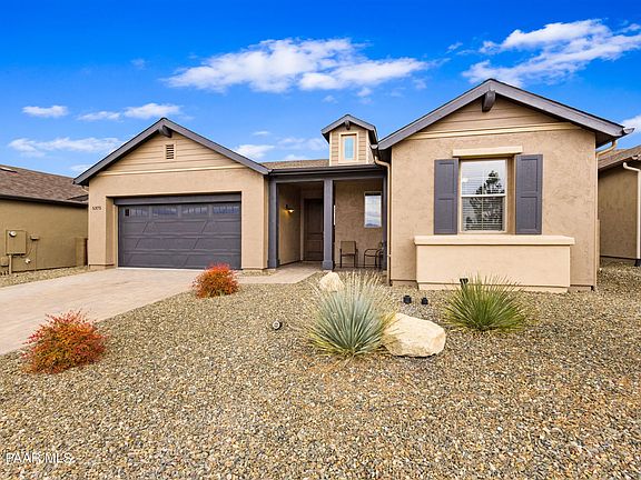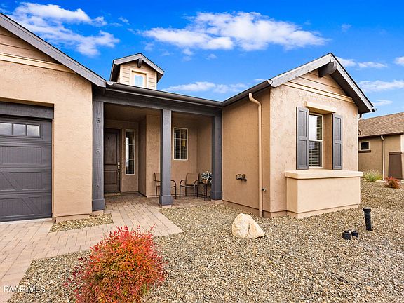 Pristine Granite Dells Estates Home. 2126 Sq Ft. 4 Bedrooms, 3 Full Bath, Deep 2 Car Garage. New Exterior and Interior Paint. New Roof and Gutters. Open Floor Plan w/12 Ft Sliding Glass Door that Opens to Covered Patio w/Extended Pavers and Walkway, Grass Yard and Garden Planters. Kitchen w/Granite Counters and Large Center Island, Corner Pantry and Extensive Cabinetry. Includes Refrigerator, Washer and Dryer. Laundry Room w/Cabinetry and Cabinet Sink Base. Beautiful Plank Style Tile Flooring in Main Living and Carpet in Bedrooms. Designer Lighted Ceiling Fans in Every Bedroom. This Energy Efficient Home is also Wired for a Security System. Includes Tankless Water Heater and Water Softener. Amazing Clubhouse Facilities. Move-in-Ready. Call for a Showing Today!