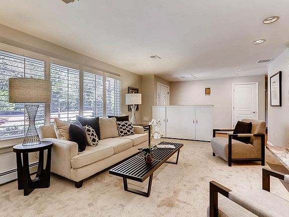 Sprawling ranch boasting mountain views welcomes and stuns at every turn! Plantation shutters, new carpeting, & fresh paint grace this well-maintained home. A double-sided fireplace warms the kitchen & open living and dining space. Flooded with natural light, the kitchen and breakfast nook feature polished hardwoods, granite counters, modern appliances including a Dacor range/oven, & built-in workstation. Adjoining access to the back deck makes outdoor entertaining a breeze! Main floor master suite offers large windows, a walk-in closet, & a 5-piece bath with luxurious heated floors. Exceptional walkout lower level provides additional living space & directly accesses both the backyard and the 2 car garage complete with a workshop & half bath! Other key features: a bonus detached 2 car garage & ample off-street parking, a large lot with mature landscaping, fenced in dog run, & an unparalleled location mere minutes from light rail and I-25. Enjoy a short stroll to the High Line Canal!