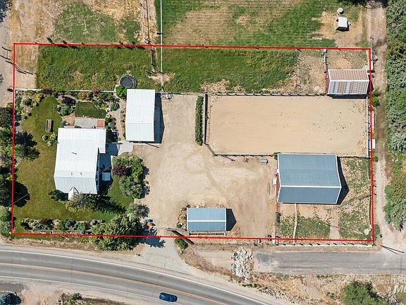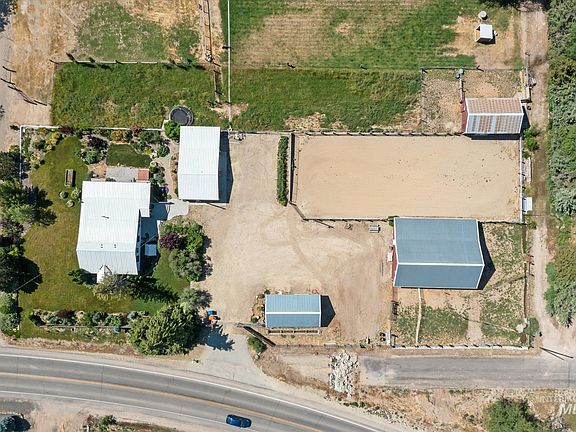 If you're looking for country living minutes from Meridian and Kuna, then you've found your spot! Charming home on 1.25 acres. TWO renovated barns contain six well-built stalls with paddocks, suited for horse boarding; bricked floor and cross-ties; a large arena for riding or lessons! All buildings have water and electricity available. Pasture runs along the south side of the entire property. The home has a spacious, well-lit dining and living room and the covered deck boasts gorgeous, bucolic views looking south. Landscaping recently renovated with evergreens, fruit trees, perennials, lawn and raised beds for gardening. The property includes a two-car detached garage and another storage building. The property has its own well, and flood irrigation, which can be further developed to suit.