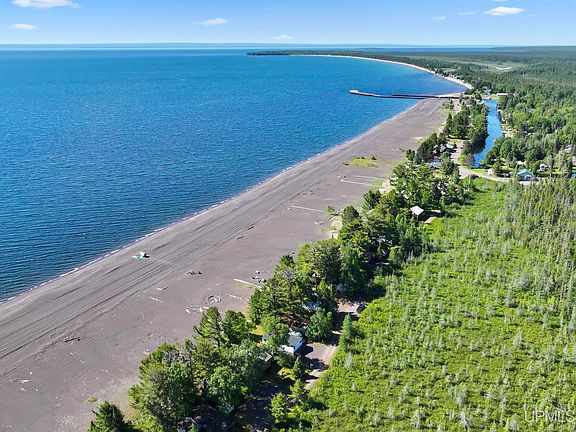 This is a great Lake Superior getaway with a charming vintage feel from around 1950. The overall condition is excellent. This three-season cabin features electric heat and a cozy wood-fired fireplace, ensuring comfort during cooler evenings. The cabin is situated on a private road, offering quiet lakeside relaxation. It has a modern, permitted well and septic system, and a brand new roof installed in June of 2024. Only one mile away from the public boat launch into Big Traverse River, with direct access to Lake Superior, the property is close to Buffalo Reef, a prominent spawning ground in Lake Superior, making it an excellent spot for big lake fishing. It is conveniently located just 11 miles from town and 1.5 miles from ATV/snowmobile trails, making it an excellent location for the outdoor-minded. Mt. Bohemia is only 28 miles away. The property is offered fully furnished and equipped, including all personal property except for a truck and camper. Shed on property is included. One of the bedrooms is a walk-through. The property has little erosion risk due to its wide beach and is subject to state of Michigan claims on accredited stamp sands. Spectacular views of the Huron Mountains. Lake Superior cabins in this price range are a rare opportunity, making this quiet, lakeside retreat a great find!