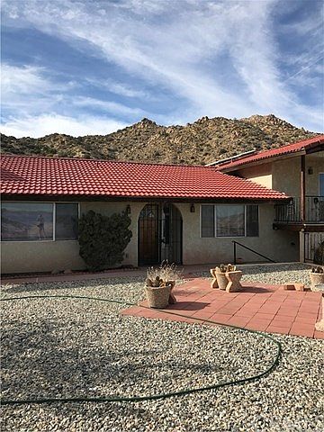 This great Country Club home sits high up on the hill. The views are beautiful, you can see the golf course from there. Than on the back side its like being in Joshua Tree park, boulders and rocks on top of hills. The street dead ends so if you want private this is the home. The home is over 2300 square feet. Two bedrooms 2 and 1/2 baths. Two living rooms, pellet stove, both with city views. Balcony off of upstairs living room. Kitchen is the 80s so it needs some TLC. If your all about location, views, and privacy and land, this is it. Sellers own 1 acre lot next to home, it is included in sales price, but it is a separate lot.