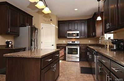 OPEN SUNDAY FEB 9th 2-4PM!!Get a "new" home in Seckman Lakes subd for a fraction of the cost of new construction and no wait!!Two year old former display has all the upgrades.Plenty of room in this open floor plan 2 story with 4 bedrooms,2 1/2 baths,and nearly 2500 sq ft not including the basement.This home also sits on a rare level lot that backs to woods and commonground.The kitchen is absolutely stunning with 42" custom cabinets and crown molding,ALL Ss APPLIANCES INCLUDED,beautiful granite countertops that match the ceramic tile flooring,center island,built-in study hutch,and walk-in pantry.The family room is very bright with a 5 bay window and marble fireplace.Separate dining room or main floor office.Mud room has plenty of storage and cubbies that leads to the 3 car garage.Enjoy a pool without the maintenance with the subd pool and clubhouse.Enjoy fishing at the large lake with fountain.Upscale living at an affordable price.WASHER AND DRYER IN 2ND FLR LAUNDRY ROOM ALSO INCLUDED.