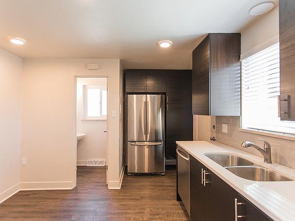 Impress your family and friends by calling this 3 bed, 1.5 bath townhouse your new home. Completely updated throughout, this unit features new paint, vinyl plank flooring, carpet, windows and central A/C. Large windows allow the perfect amount of natural light to fill the space as well as views of the Rockies. The kitchen features stainless steel appliances, new cabinets and a built-in table. Head upstairs to find two spacious bedrooms with plenty of closet space as well as a beautifully updated bath. Note, finished basement space is the non-conforming third bedroom. Residents will enjoy semi-private outdoor space to include a patio for BBQing and yard. $35/month covers water, sewer, and trash- Gas and electric set up in the tenant's name. Conveniently located near Ash Grove Park, I-25 and Evans Ave. Call to set up your private showing now 720-605-0464; these units will not last long! Lease through 5/27/2019