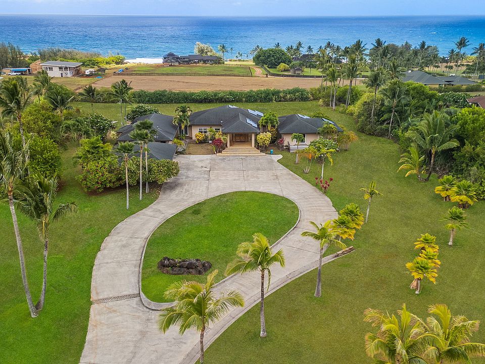 Located in the coveted Aliomanu Estates, this home is just a short walk from secluded beaches and enjoys a dry, breezy microclimate unique to this Anahola coastline. A rare offering of privacy, panoramic views, and timeless island living.<br><br>Enter through a private gated drive lined with palms and lush landscaping onto this 4.58-acre estate. The single-level 3,500 sq. ft. residence features 4 bedrooms, 3.5 baths, soaring 20-ft vaulted ceilings, and seamless indoor-outdoor living through custom pocket doors.<br><br>Through the Custom Hardwood front doors, you'll find an expansive main room with a natural feel, travertine flooring throughout, and a comfortable split floorplan that creates an atmosphere of spaciousness and privacy during gatherings.<br>Designed for entertaining, the chef’s kitchen includes a Wolf Gas Oven, dual sinks, extensive cabinetry, and a generous walk-in pantry<br><br>The oversized primary suite captures vast ocean views, complemented by a dedicated ocean-view office. Multiple lanais frame Kalalea Mountain, sunrises, sunsets, moonrises, and seasonal whale watching.<br><br>Additional highlights include a separate attached guest/mother-in-law suite, an 840 sq. ft. oversized garage with circular drive, and a producing orchard of 30+ lime and lemon trees, 30+ coconuts, plumeria, and lush tropical landscaping—all supported by a full sprinkler system.<br><br> Island living at its finest—a perfect balance of elegance, comfort, and natural beauty.