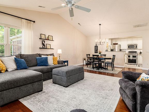 This exceptional end-unit condo in the Ravines at Rocky Fork offers the perfect blend of luxury and convenience! Come experience this home's welcoming atmosphere and ample natural light. Inside you will find a spacious great room, vaulted ceilings and a beautiful four-season room - the perfect spot for your morning coffee! The updated kitchen with stainless steel appliances, new counter tops and modern tile flooring is a chef's dream! The first-floor primary suite boasts a deluxe bathroom with a large walk in closet. An additional bedroom and full bath complete the first floor, while the upstairs features a private guest's retreat with another bedroom and full bath. Other highlights include hardwood floors, updated bathrooms and newer windows. This condo is a gem and move-in ready!