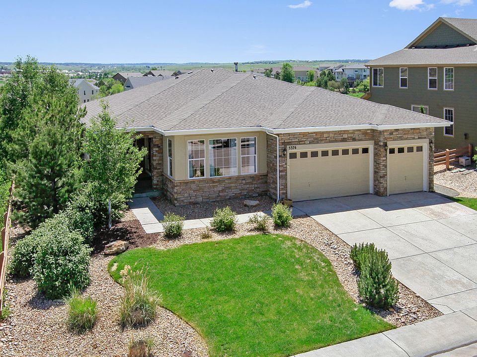 Stars and Stripes Homes DTC, Inc. welcomes you to an absolutely wonderful RANCH home for sale in Pradera backing to open space and offering breathtaking views of open grasslands. The main level maximizes the "great room" concept allowing for easy flow between the kitchen and family room, which is complete with a gas fireplace and a built-in media nook. Spacious gourmet kitchen with cherry cabinets, granite counters, stainless steel appliances including a double oven, a huge island and separate eating nook, with gorgeous Brazilian cherry hardwood floors! Master bedroom has a wonderful 5 piece bathroom with a Jacuzzi tub, and a very large walk-in closet! Formal dining room with built-in cabinetry! Formal living room! 3 car garage! HUGE balcony framed by mature Aspen trees offers fantastic views of open grasslands! The Pradera neighborhood offers a wonderful community center with a pool and sun deck, tennis courts, playground, and an extensive trail system. WOW - THIS RANCH WILL NOT LAST! Please call Mike Giallanza at 303-918-3175, or email Mike@sshdtc.com to set a showing. This home is exclusively listed by Stars & Stripes Homes DTC, Inc.