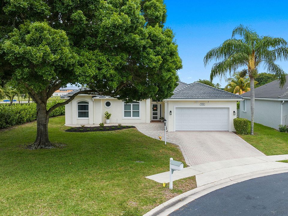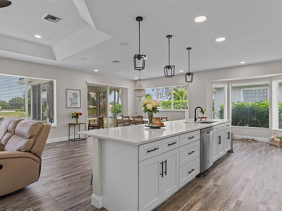 HOA INCLUDES: Cable (HBO), Internet (Fiber Optic), Landscaping, Gated security, Landscaping irrigation and more!! FULLY RENOVATED, CORNER UNIT, designer, lakeview, single family home nestled in a cul-de-sac in the private gated community of Sandpiper Isle. Enter through a custom hurricane impact door to an open floor plan flooded with natural light! Custom white shaker kitchen cabinets with subway tile backsplash and quartz countertops. New hurricane impact windows and doors, 2023-barrel tile roof, 2023 GE appliances, 2023 impact insulated garage door, 2023 AC and water heater. Master bathroom has a large walk-in shower with custom farmhouse glass shower doors. Large screened in patio with breathtaking lake views. This home is truly move in ready!