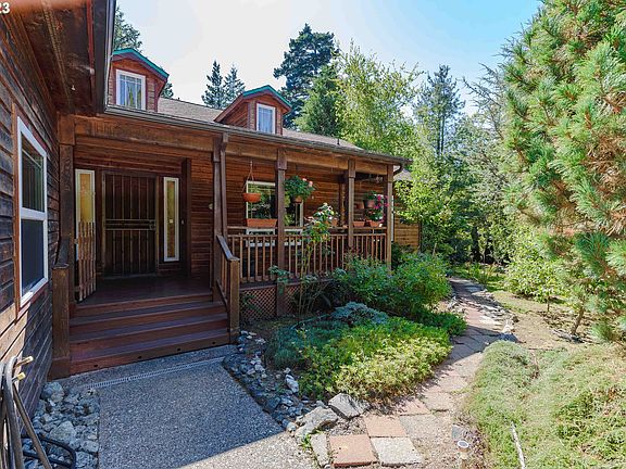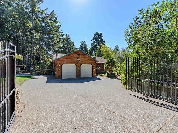 Gated and private, this Bradley Lake Estates contemporary home is ready for new owners! Home sits on a large .55 acre flat lush lot with fruit trees and flowers and has a forested walking trail to Bradley Lake. Home features light and bright open floor plan, wood floors, propane fireplace, master suite with walk in closet and attached sitting/bonus room and private balcony, formal dining, custom cabinets/counters, breakfast bar, hallway to two additional bedrooms separated by a full bath and bonus room/office with built ins. Attached double car garage and large tool shed for storage. Gorgeous living space inside and out! This home has been loved and it shows! Come see!