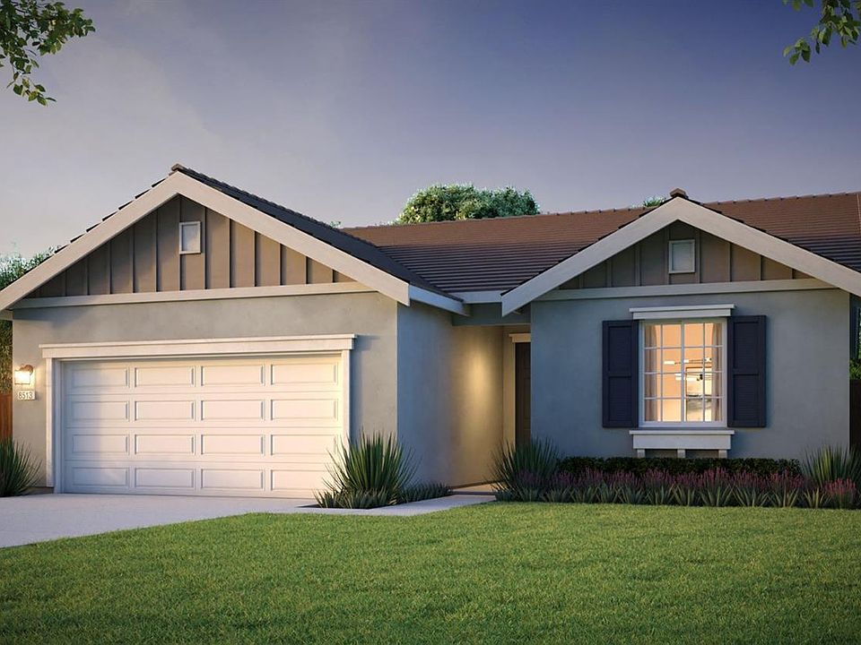 New Construction with April Move-In! Discover a pristine single-story residence with this sought-after floorplan boasting a spacious great room, for socializing and hosting gatherings with ease. The residence will showcase timeless white shaker cabinets, LG stainless steel kitchen appliances including 5-burner smart wi-fi enabled 30" gas range with a microhood, and dishwasher. This home also includes a centrally located Laundry Room with pre-plumbing for a washer and dryer, spacious secondary bedrooms, a large Owner's Suite with walk-in closet, and an adjoining private bath with dual vanities. Efficiency meets innovation with a smart thermostat, tankless water heater, and the choice to lease or own solar. Customizable cooling is ensured with prewiring for ceiling fans in the great room and each bedroom. Enjoy low-maintenance, drought-resistant front yard landscaping, and various neighborhood amenities. Resting on a spacious 6000 sq. ft. lot, the property offers an exceptionally wide side yard, around 15'+/-, ensuring abundant outdoor space for recreation and relaxation. Transform this home into your haven, blending style and practicality for an extraordinary living experience. Please note that interior photos are from the model home and are for representational purposes only.