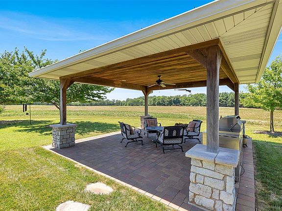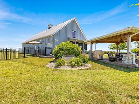 Top-Shelf Quality Barndominium available for purchase! Located on a breezy hilltop, this property offers panoramic views of rolling hills, fields & woods in every direction. Enter via a gated entrance leading to the impressive and unique home. Built with quality at every turn, the Morton Building home showcases a standing seam metal roof, complete w/ charming cupola, Pella Windows, Hickory floor in the home & epoxy overlay flooring in the garage. Carriage style garage doors, stone accents, & picture perfect gazebo can all be enjoyed, along with 10 acres of stunning scenery. The cavernous garage features cabinetry, sink, & floor drains w/ 750 gallon water tank for drainage water. The kitchen features hard surface counters, pantry, tile back splash, stainless steel appliances & frosted front cabinetry. The home is also equipped with Zoned HVAC, whole house emergency generator, water softener, 2 wells, external security cam system & owned propane tank. 18.79 additional acres available.