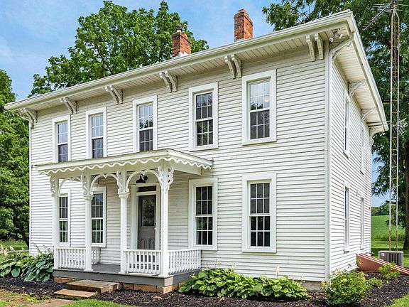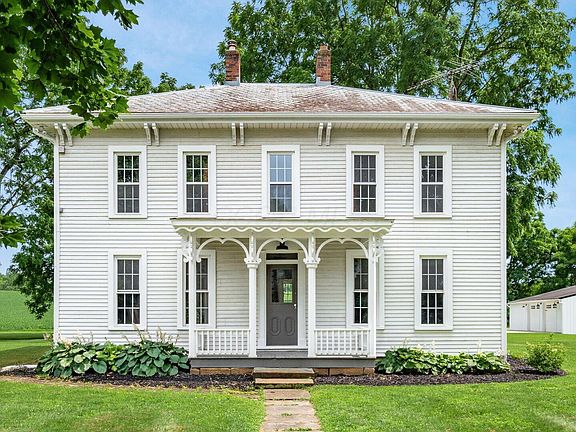 Welcome to this beautifully renovated 4-bedroom, 2-bath farmhouse that perfectly blends timeless character with thoughtful modern updates. Nestled on more than 4 picturesque acres, this 2,300 sq ft home offers room to roam, relax, and savor peaceful countryside living — all within a short, convenient commute to Columbus, New Albany, Johnstown and Granville. Step inside and you'll immediately appreciate the inviting warmth and craftsmanship throughout. The bright, open-concept kitchen is the true heart of the home, featuring crisp white cabinetry, marble countertops, charming farmhouse sink and new stainless appliances. The spacious living areas showcase original details like refinished hardwood floors and wide wood trim, fresh, neutral paint and updated lighting. Bathrooms are completely remodeled with the first-floor bathroom featuring a fabulous claw foot tub. Large windows fill the home with natural light and offer peaceful views of the surrounding land. A spacious detached garage with workshop & storage area provides ample room for hobbies, equipment, or extra vehicles. Whether you're dreaming of a hobby farm, a serene weekend retreat, or a forever home in the country, this move-in-ready property delivers.